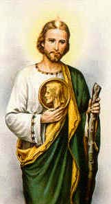 A San Judas le dieron muerte con una cachiporra (por eso se le representa con una porra sobre la cabeza); luego, se la cortaron con un hacha.